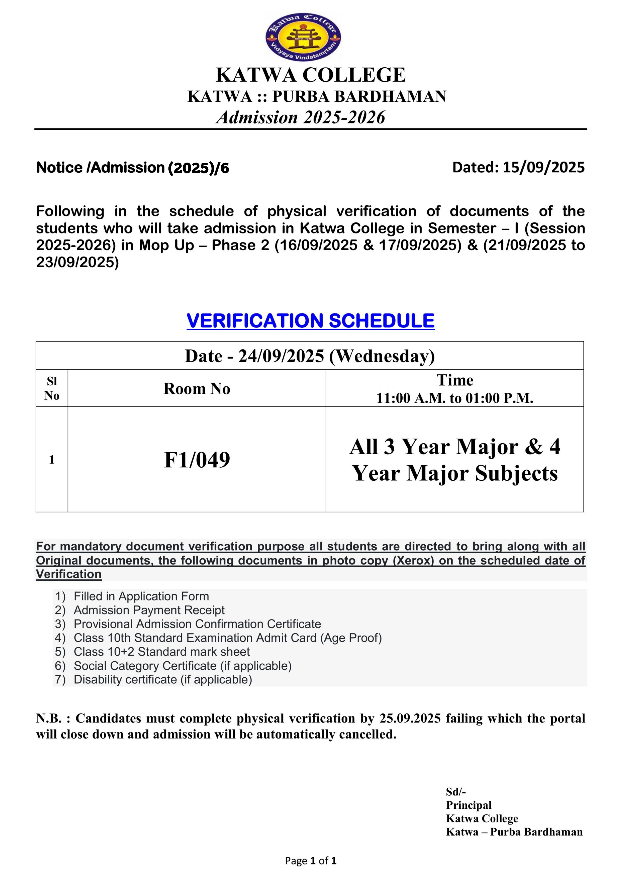 | 15/09/2025 | Verification Schedule Notice 6 2025 for students MOP UP Phase 2 | view |