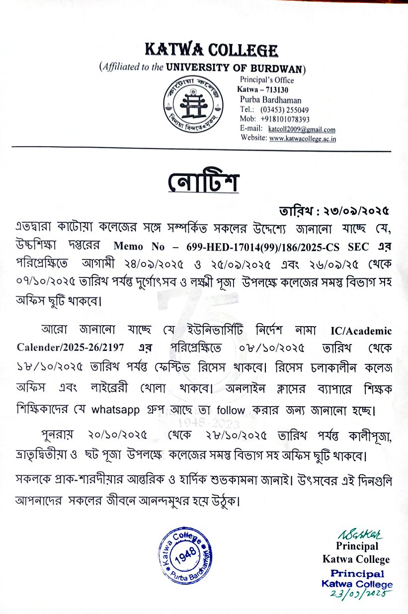 | 19 | Notice for Puja Vacation 2025 | 23/09/2025 | general & admission |